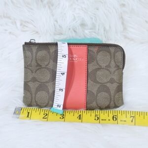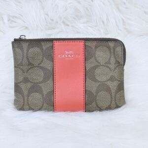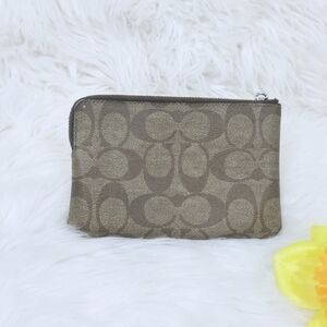 Coach monogram wristlet brown It has a small stain on the front and does not have the strap used but in good condition smoke-free home and shipping the same day,Please look at the pictures before