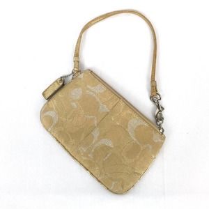 Coach Monogram Wristlet Bag Gold Silver Metallic Mini Zipper Pouch Fabric