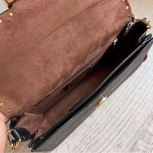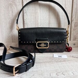 Brand new can be worn as a leather crossbody bag or handbag. Like the Coach Tabby, this small shoulder bag can hold your wallet, phone, makeup, and more. An outside slip pocket offers easy access to a credit card or other small items. It offers plenty of functionality and a simplicity of style that will allow you to transition through your day seamlessly, no matter where it takes you.