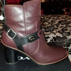 These boots are amazingly beautiful!!! From the Oxblood coloring, to the delicate flowers and the charms hanging from the back!!!! It gives a jingle jangle with every step!!! No scratches, no scuffs...the only visible wear is on the pads of the foot bed. Boots have been kept in coach bag and box!! Comes from smoke free home..