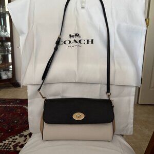 Coach Multi Color Leather Shoulder/Clutch/Crossbody Bag Chalk, Beechwood, Black