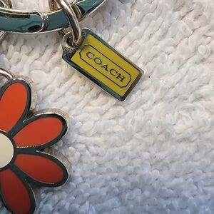 Coach Multicolor Daisy Enamel & Silver Split Ring Keychain Bag Charm NEW