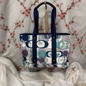 Stylish and versatile, this Coach tote bag features a vibrant multicolor design. Perfect for any occasion, it combines fashion with functionality.