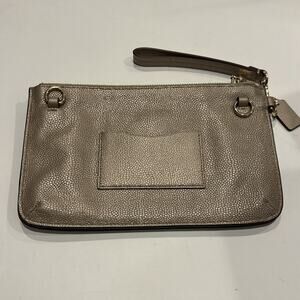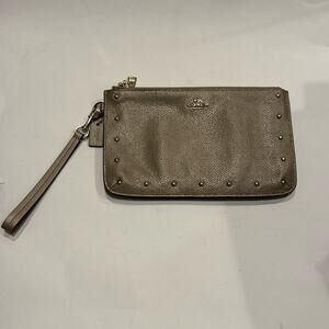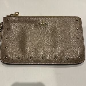 Coach NWOT Gold Clutch with Gold Studs with 2 zipper Compartments