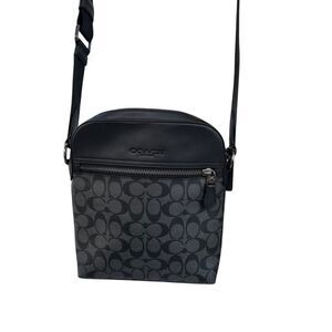 This Coach crossbody bag combines functionality with style. It features the signature canvas design with leather trim, offering durability and an upscale look. Its adjustable strap ensures versatility, while the compact size makes it ideal for carrying essentials.