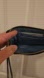 2 inside card slots. Blue fabric interior. Zip closure. Wristlet strap.
