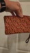 Stylish wristlet featuring a distinctive Coach logo pattern. Crafted in elegant pink and brown tones, perfect for carrying essentials with ease.
