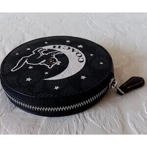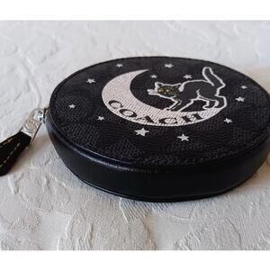 Coach NWT Black Cat Signature Zip Round Coin Case Wallet CX348 SOLD OUT $128