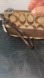 Brand new with tags on Coach Signature C Wristlet, in dark brown with the iconic "C" monogram pattern on a sateen fabric, accented with a horizontal sateen stripe and leather trim. Features a wrist strap and gold-tone hardware.