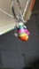 Vibrant mitten keychain with rhinestone accents. Features stripes in pink, blue, green, yellow, and orange.