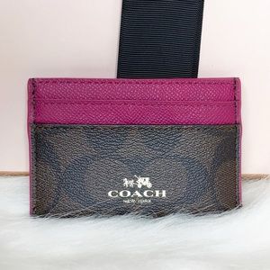 Coach NWT Signature Print and Fuchsia Card Holder