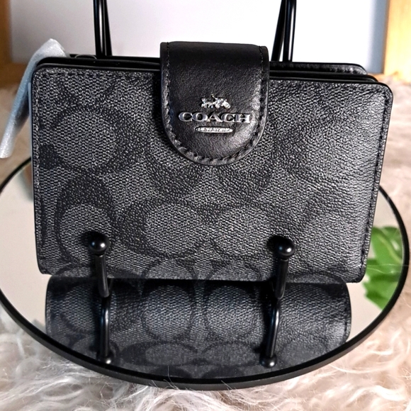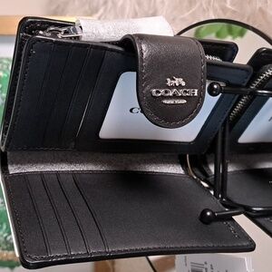 Nwts Coach Black Medium Corner Zip Wallet In Signature Canvas