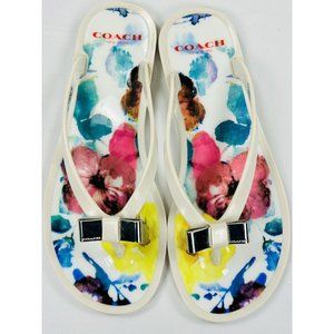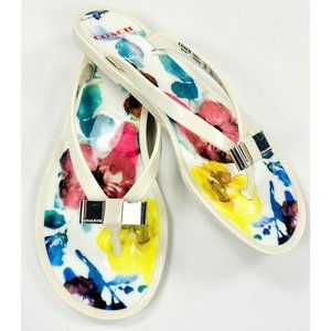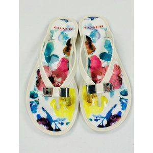 Coach NY White Pearl & Floral Jelly Flip Flop Sandals with Silver Bows Size 5