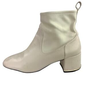 Coach Nala Chalk White Leather Zip Up Block Heel Western Ankle Boots Booties 10