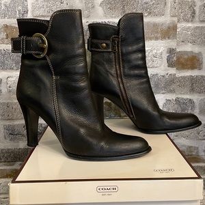 Coach Nancie Soft Calf Black Pebbled Leather Heeled Bootie Made in Italy 9.5