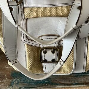 Measures approx 11.5" high, 17" wide, 6" deep, 9" strap drop