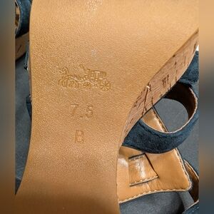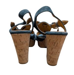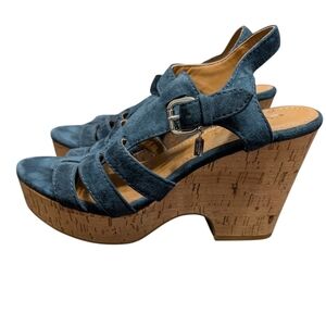 Coach Navy Blue Suede Kennedy Cork Wedge Heel Open Toe Ankle Strap Sandals 7.5B