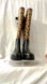 No box, with slight manufactures flaw in the leopard print, on one of the boots.