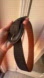 Elegant black leather belt. Crafted with quality. 10-12” across buckled