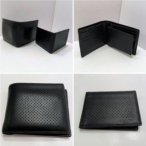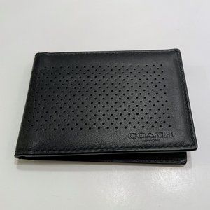 Coach New York Black Perforated Leather Bifold Wallet & Removable Compact Wallet