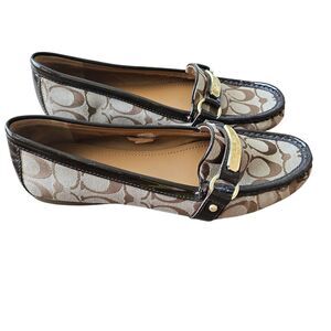 Coach New York Felisha Signature C Loafers Flats US 9B Brown Gold Buckle AS
