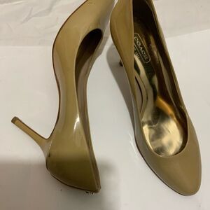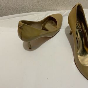 Coach New York Grand patent beige kitten heel pointy toe pumps heels Size 8 B