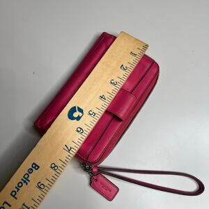 Coach New York Leather Wristlet Wallet Pink Zip Around Clutch Purse With Strap
