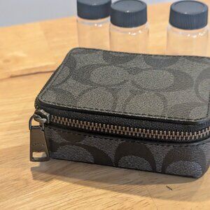 Coach New York Black Travel Pill Case with Signature Pattern-Canvas and Leather