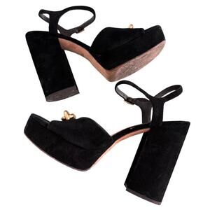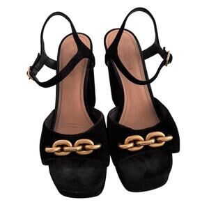 Coach Nicolette Sandal Gold Chain Black Suede 4.75"Block Heel 1.25"Platform-9.5