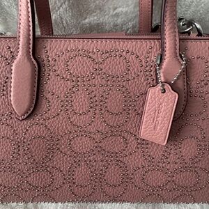 Coach Nina Small Tote Bag With Signature Rivets Silver / Pink Petal