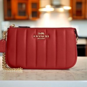 Coach Nolita 19 With Chain With Linear Quilting Wallat Wristlet Red C8302