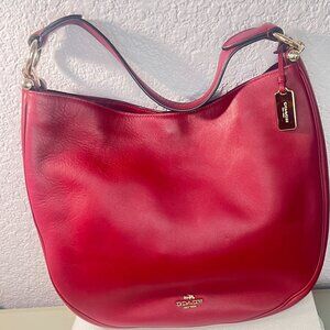 Coach Nomad Hobo 36026 snap close soft glove tanned leather deep red gift Mom Wife Grandmother. This classic design will show off your good taste. Add a pop of color to any outfit with this gorgeous Coach Nomad Hobo bag. Made of soft, high-quality leather in a deep shade of red, this bag is the perfect accessory for any occasion. The spacious rectangle shape and snap closure (magnetic) make it easy to carry all your essentials, while the shoulder strap ensures comfort throughout the day.