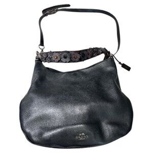 Coach Nomad Hobo Black Leather Tea Rose Willow Crossbody Shoulder Bag #55543