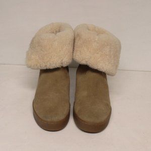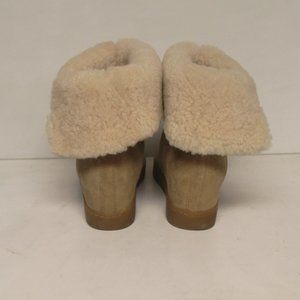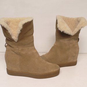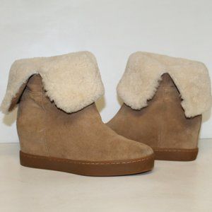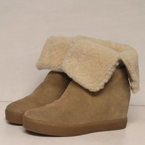 Coach Norell Suede Shearling Fold Over Cuff Hidden Wedge Bootie Boot