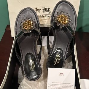 Coach Norice Brown Logo Wedge Thong Brooch Sandals, 9M