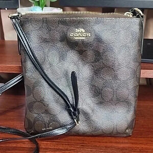 Coach North South Crossbody Bag Signature Brown Black – Authentic