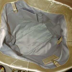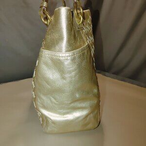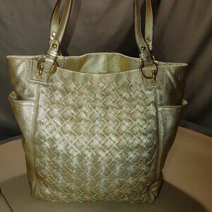 Coach North South Leather Gold Metallic Tote Handbag Bag Woven Dual Handles