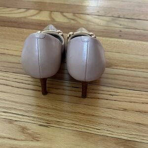 Sophisticated nude heels with elegant gold accents. Perfect for any occasion.