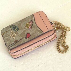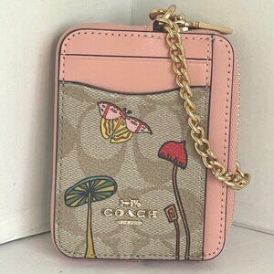 Coach Observed By Us Zip Card Case Signature Canvas Leather Khaki CU403 Pink