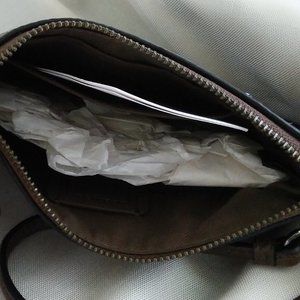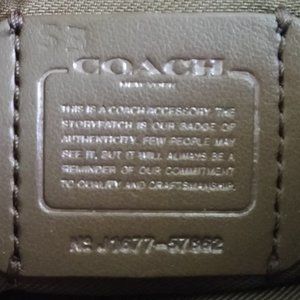 NWOT Style 57862 This Unique Fatigue color Wristlet with Black Copper hardware is perfect for cash, cards, keys and other small essentials. The strap, with a dog leash clip, can be worn on your wrist or clipped inside your bag for easy Day to Night use. There are two credit card slots inside on the linen lining. Size is 7.25 x 4.5 and the iconic Coach Hang Tag is also included.