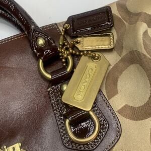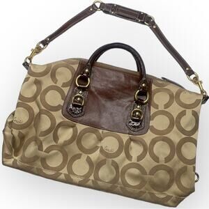 Coach Op Art Large Sabrina H0826-12943 Khaki Sateen/Leather Satchel Bag