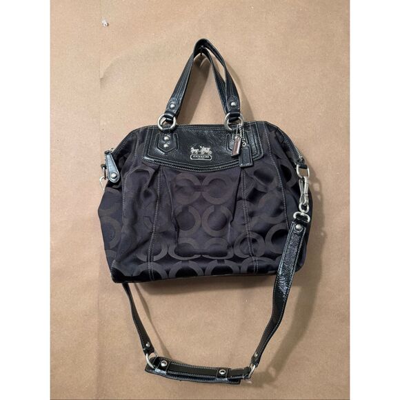 Coach Op Art Signature Handbag Black Purse Shoulder Bag *note