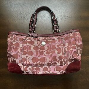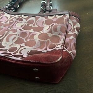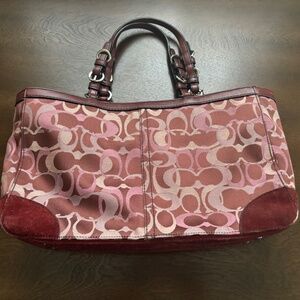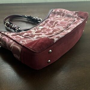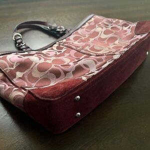 Coach Optic signature Burgundy mauve suede tote handbag 7038 vtg Y2K mono