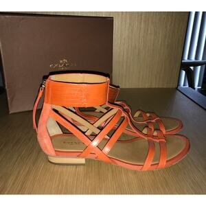 Coach Orange Ankle Wrap Zipper Back Sandals 6.5 with BOX