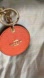 Stylish orange leather keychain by Coach. Features gold-tone hardware and logo detail.