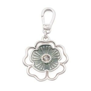 Coach Organic Tea Rose Charm Pendant Crystal Enamel Silver Tone
