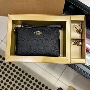 Coach Outlet Boxed Corner Zip Wristlet In Signature Leather CF358 IMBLK