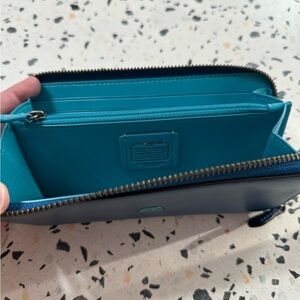 Limited edition blue ghost zip around accordion wallet. Gently used and signs of wear noted in pictures. Small marks on back and some wear along the bottom.