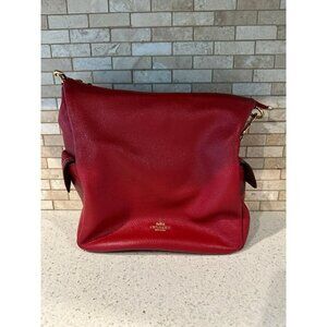 Coach PENNIE Pebbled Red Leather Shoulder/Crossbody Handbag Goldtone RARE 13 inches wide 11 inches tall