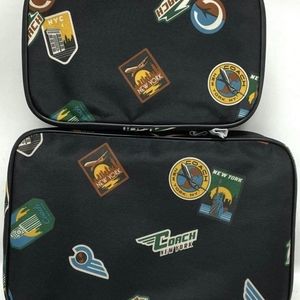 This Coach Packing Cube Nesting Set is a must-have for any traveler who wants to stay organized. The set includes multiple cubes made of high-quality leather and nylon materials, perfect for storing clothes, shoes, and other travel essentials. Each cube is adorned with fun travel patches and comes in a stylish gunmetal multi-color design. The unit quantity is one, making it easy to pack and carry with you on your next adventure. Whether you're heading on a weekend getaway or a long-term trip, this travel bag set is sure to make packing and organizing a breeze.